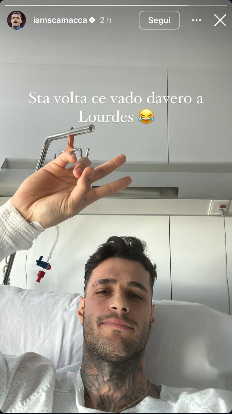 Tramite una storia Instagram, l'attaccante dell'Atalanta, Gianluca Scamacca, ha fatto sapere a tutti di stare bene dopo l'intervento chirurgico a causa della lesione della giunzione muscolo-tendinea prossimale del retto femorale della coscia destra. Nel postarla usa anche un po' di ironia, per provare a prendere con filosofia questa catena di eventi poco fortunati che lo vedono protagonista, scrivendo sopra l'immagine: "Stavolta ci vado davvero a Lourdes". Il giocatore era appena rientrato dal lungo stop a causa della rottura del legamento crociato anteriore del ginocchio sinistro e dunque dovrà stare fermo per diverso altro tempo.
