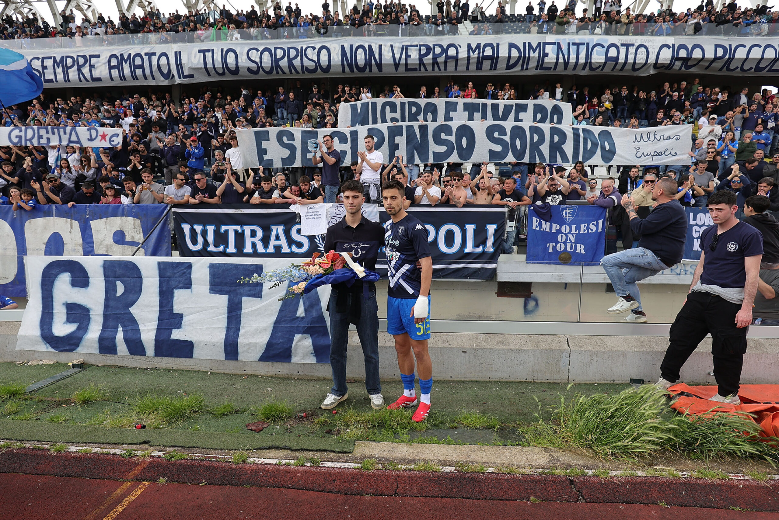 L’Empoli è sceso in campo con il lutto al braccio, non solo per Greta, ma anche per onorare la memoria di Giulio Drago, primo storico portiere della squadra nella stagione d’esordio in Serie A, scomparso anch’egli nei giorni scorsi. Di seguito la foto: