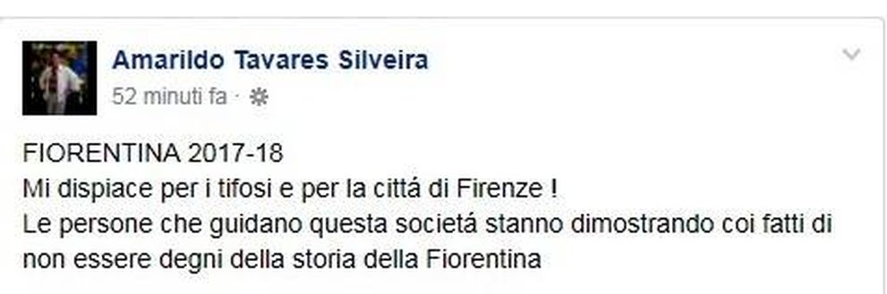 Duro affondo dal Brasile nei confronti della società viola. La firma è dell'ex viola campione d'Italia nel '68-'69, Amarildo Tavares de Silveira, o più semplicemente Amarildo. Questo il suo ultimo post su Facebook: