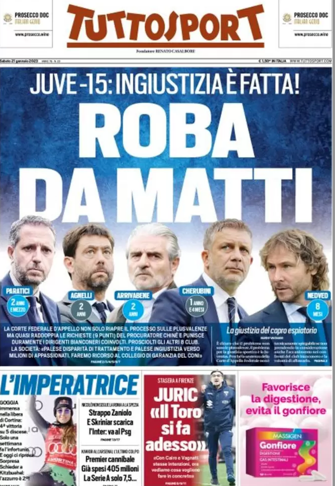 Nella giustizia sportiva, gli organi non hanno un potere inquisitorio, si devono basare su indagini fornite da altri organi. E' stabilito che la decisione possa essere riaperta in presenza di nuove prove fornite. Le intercettazioni hanno evidenziato le responsabilità di altri soggetti che porterà a coinvolgere nuovamente la Juventus per i falsi in bilancio e in quell'occasione verranno affrontate le altre società coinvolte. Tutte le altre società sono state prosciolte ieri perchè il loro quadro giudiziario non era variato rispetto alla precedente inchiesta PRISMA.