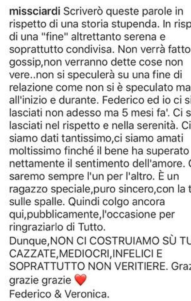 Veronica Ciardi, ex fidanzata del giocatore viola: "Federico è una persona speciale, ci saremo sempre l'uno per l'altro. Non costruite ca***te"