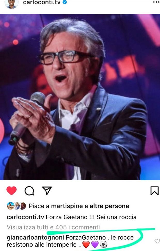 Dopo le buone notizie arrivate nel primo pomeriggio, registriamo anche la vicinanza da parte del mondo dello sport e dello spettacolo. In particolare, ecco le reazioni di Carlo Conti, Giancarlo Antognoni e Piero Pelù.