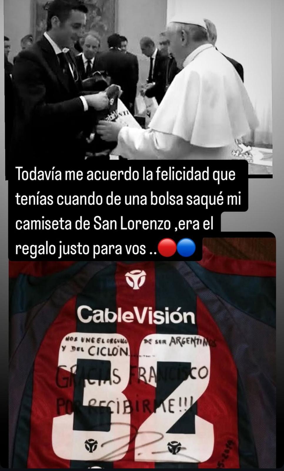 L'ex difensore della Fiorentina Gonzalo Rodriguez ha pubblicato su Instagram una storia per ricordare Papa Francesconel giorno della sua scomparsa. Ecco la foto della storia pubblicata dall'argentino, connazionale di Bergoglio, il quale era un gran tifoso del San Lorenzo, mentre di seguito il testo tradotto:"Ricordo ancora la felicità che hai provato quando ho tirato fuori dalla borsa la mia maglia del San Lorenzo; era il regalo perfetto per te...".