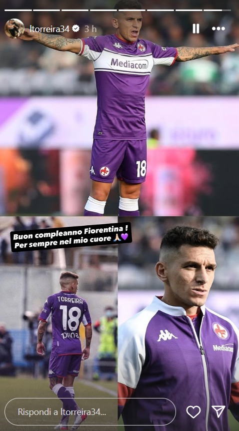 Una sola staigione alla Fiorentina, ma che evidentemente è stata sufficiente per fargli entrare il viola nel cuore. Stiamo parlando di Lucas Torreira, centrocampista uruguaiano oggi in forza al Galatasaray. L'ex viola ha voluto condividere sui propri social network un'immagine per fare gli auguri di compleanno al club. Torreira ha speso anche bellissime parole per la maglia gigliata: "Buon compleanno Fiorentina, per sempre nel mio cuore". Questa la storia postata sul suo profilo Instagram.