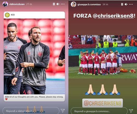 Joseph Commisso e Dusan Vlahovic hanno voluto mostrare la loro vicinanza al centrocampista dell'Inter con una storia pubblicata su Instagram.