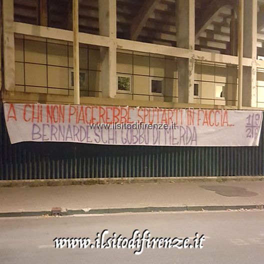 Nuovo striscione appeso stamani sui cancelli dello stadio Franchi. Questa volta ad essere preso di mira è Federico Bernardeschi, sempre più in odore di Juventus. "A chi non piacerebbe sputarti in faccia...Bernardeschi gobbo di m...", questo il testo del messaggio firmato 1926, con il chiaro riferimento alle parole del numero 10 viola a La Gazzetta dello Sport "A chi non piacerebbe giocare nella Juve". Questa la foto dello striscione ripresa da Ilsitodifirenze.it