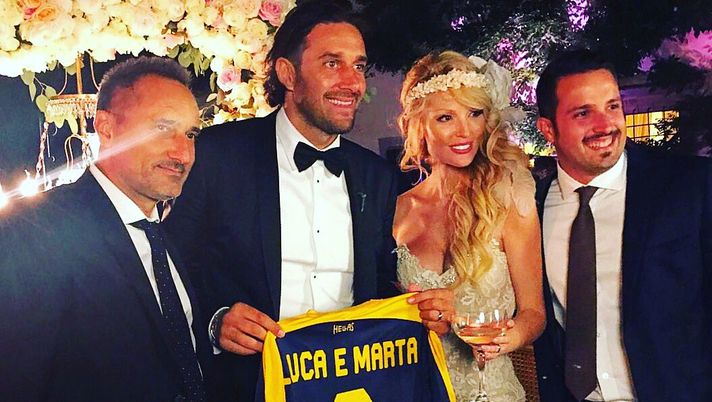 E' accaduto tre giorni fa, alla vigilia di Verona-Fiorentina, ma la notizia è diventata di dominio pubblico solo nelle ultime ore. Luca Toni si è sposato con la "sua" Marta Cecchetto, compagna da ormai 14 anni da cui ha avuto anche due figli. L'ex bomber viola (e dell'Hellas) ha scelto la Toscana e le colline intorno a Fiesole per coronare la sua storia d'amore. Qui sopra la foto tratta da twitter in compagnia del presidente gialloblu Setti con cui Toni si è professionalmente... separato solo pochi mesi fa, dopo una stagione vissuta da vice presidente del Verona.