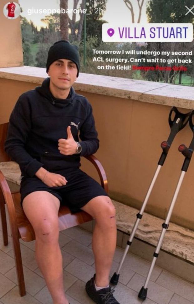 Il calciatore del Perugia Giuseppe Barone, figlio del direttore Generale della Fiorentina, ha subito un brutto infortunio che lo terrà lontano dai campi per diversi mesi. A seguito degli esami strumentali è stata riscontrata una una lesione distrattiva del legamento crociato anteriore del ginocchio destro. Nelle prossime ore si sottoporrà ad un intervento chirurgico a Roma. Molta sfortuna per il figlio d'arte che già in passato aveva dovuto fronteggiare un simile incidente.