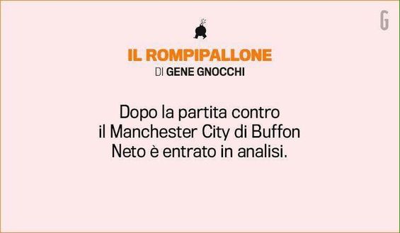 Nel suo consueto "rompipallone" sulla Gazzetta dello Sport, oggi Gene Gnocchi si concentra su Neto, riaprendo il tema della sua scelta di lasciare la Fiorentina per fare la riserva di Buffon, strepitoso martedì sera contro il City.