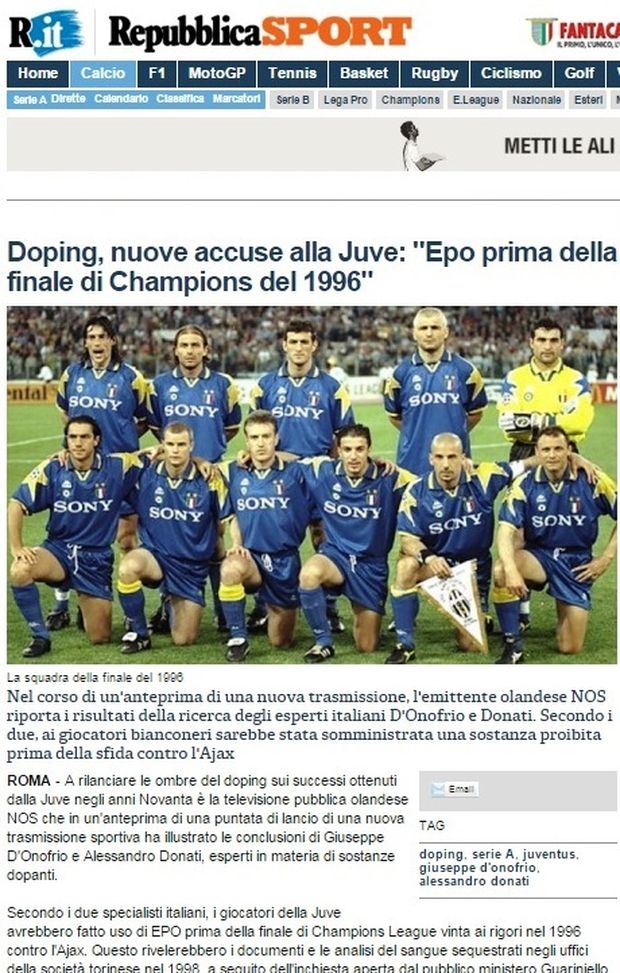 Nel dicembre 2005, dopo diversi anni di inchieste e processi, i giudici della Corte di Appello di Torino al termine del procedimento penale per la somministrazione di farmaci dopanti ai giocatori bianconeri (del periodo 1994-1998), assolsero il medico sociale Riccardo Agricola e l'amministratore delegato Antonio Giraudo. I giudici ritennero che non si potesse applicare la legge 401 del 1989 (la frode sportiva) per l'uso di farmaci in quanto il fatto non era previsto dalla legge come reato. Nel 2007 la Cassazione, pur riconoscendo condivisibile il ricorso contro il verdetto emesso in secondo grado, chiuse definitivamente la vicenda in quanto era scattata la prescrizione. In pratica venne ammesso l'uso di farmaci sui giocatori della Juventus, ma non venne preso alcun provvedimento in quanto, all'epoca, il fatto non costituiva reato.