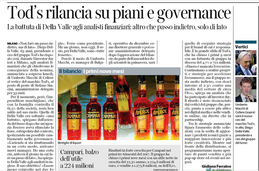 Vi riportiamo uno stralcio dell'articolo di oggi del Corriere della Sera dedicato alla Tod's: