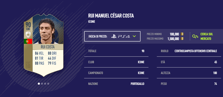 Per gli amanti dei videogiochi, dal cuore viola, una piccola bella notizia. Fifa 2018 ha riservato una categoria alle "icone", cioè ai grandi campioni del passato che si possono schierare nelle proprie squadre. In questa lista ristretta figura anche Manuel Rui Costa che, peraltro, ha i suoi valori più alti negli anni in cui ha militato nella Fiorentina (tra il 1994 ed il 2001). Qualche perplessità invece sul criterio di scelta delle icone perchè, accanto a fenomeni come Maradona, Pelè e Ronaldo, figurano giocatori come Crespo e Del Piero, mentre non sono inseriti nel gioco altri grandi campioni del passato gigliato come Batistuta, Baggio o Antognoni.
