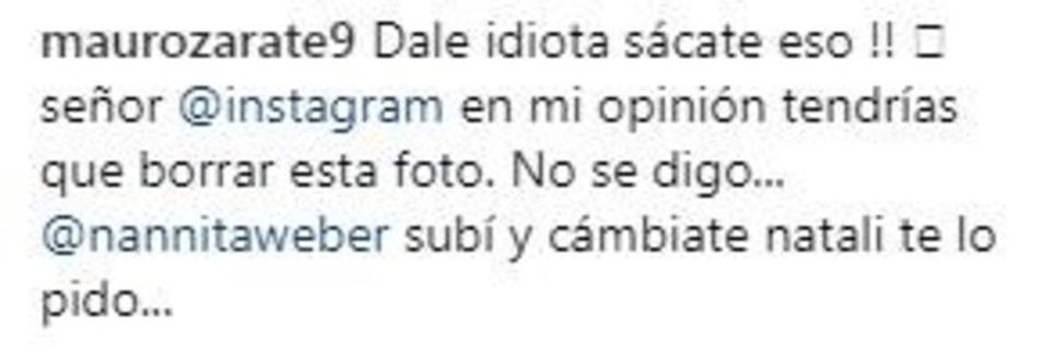 Fa discutere in Argentina il comportamento via social dell'ex giocatore della Fiorentina Mauro Zarate. In una delle ultime foto postate su Instagram dalla moglie Natalie, che lottò con un tumore al seno nei mesi in cui Mauro giocava nella Fiorentina, Zarate ha lasciato un commento particolarmente duro nei confronti di lei per degli scatti troppo "spinti", invitando addirittura Instagram a oscurare la foto. La questione è arrivata anche sui quotidiani online argentini. Numerose critiche sono arrivate anche dagli utenti del social network che hanno invitato Zarate a usare altre espressioni. Natalie, dal canto suo, non ha avuto alcuna risposta, ma ha continuato a pubblicare immagini insieme al marito anche nei giorni seguenti, come se niente fosse successo. Ecco il post incriminato e il commento di Maurito.