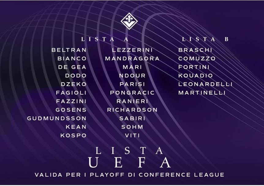 Ecco la lista ufficiale dei calciatori viola che potranno giocare i playoff di Conference League con il Polissya