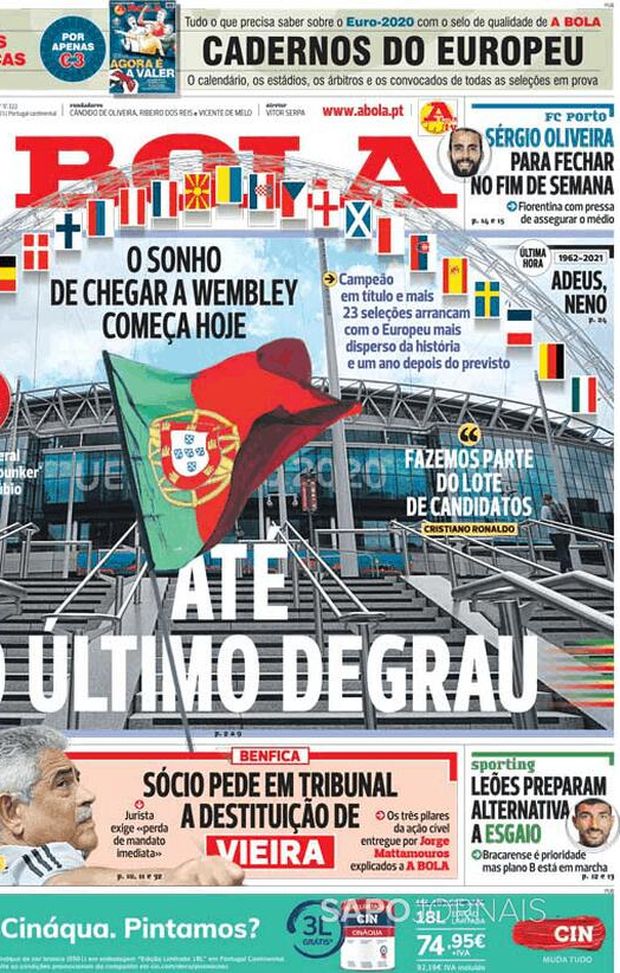 L'apertura (visibile in calce all'articolo) del noto quotidiano portoghese A Bola è chiara, oltre all'inevitabile spazio all'avventura europea della nazionale, si parla (in alto a destra) del futuro di Sergio Oliveira. Nella prima pagina si legge, infatti, come il club viola sia intenzionato a stringere i tempi per arrivare al centrocampista tanto che cercherebbe la chiusura "Prima del fine settimana". Conosciamolo meglio con la scheda di TuttiTalenti.com