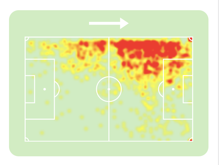 Vi riportiamo l'area di gioco prevalente di Solomon nella stagione scorsa quando in Championship con il Leeds giocò ben 40 partite da esterno sinistro offensivo. Stessa posizione ma con minori conferme anche per la stagione in corso. Con il suo arrivo si capisce che la Fiorentina vuole avere un'alternativa proponendo un modulo diverso che va dal 4-2-3-1 al 4-4-2 passando anche per il 4-2-3-1.