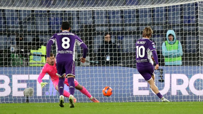 Pareggio della Lazio, sempre dal dischetto. I viola non riescono a tenere il vantaggio, i biancocelesti con Zaccagni beffano Comuzzo e guadagnano un penalty. Dagli undici metri Pedro non sbaglia.