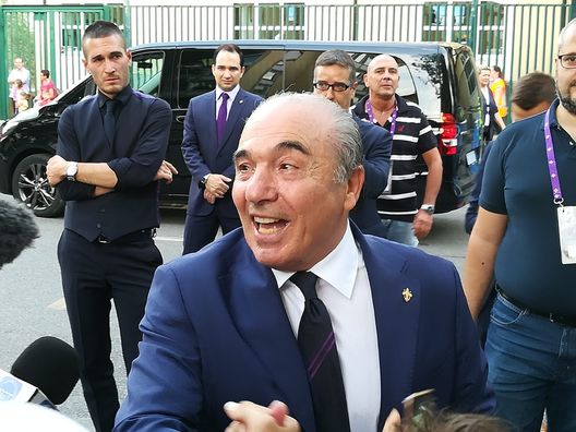 Tifosi già in clima partita, in numerosi hanno accolto l'arrivo di Rocco Commisso che ha salutato e risposto ai cori dedicati a lui. Insieme al figlio, alle porte dello Stadio Artemio Franchi, si è concesso ad una breve sessione di autografi e scatti con i supporter gigliati.