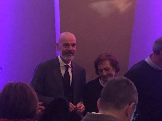 Il Mister della Fiorentina, Stefano Pioli, ad un evento per Davide Astori insieme alla famiglia del capitano