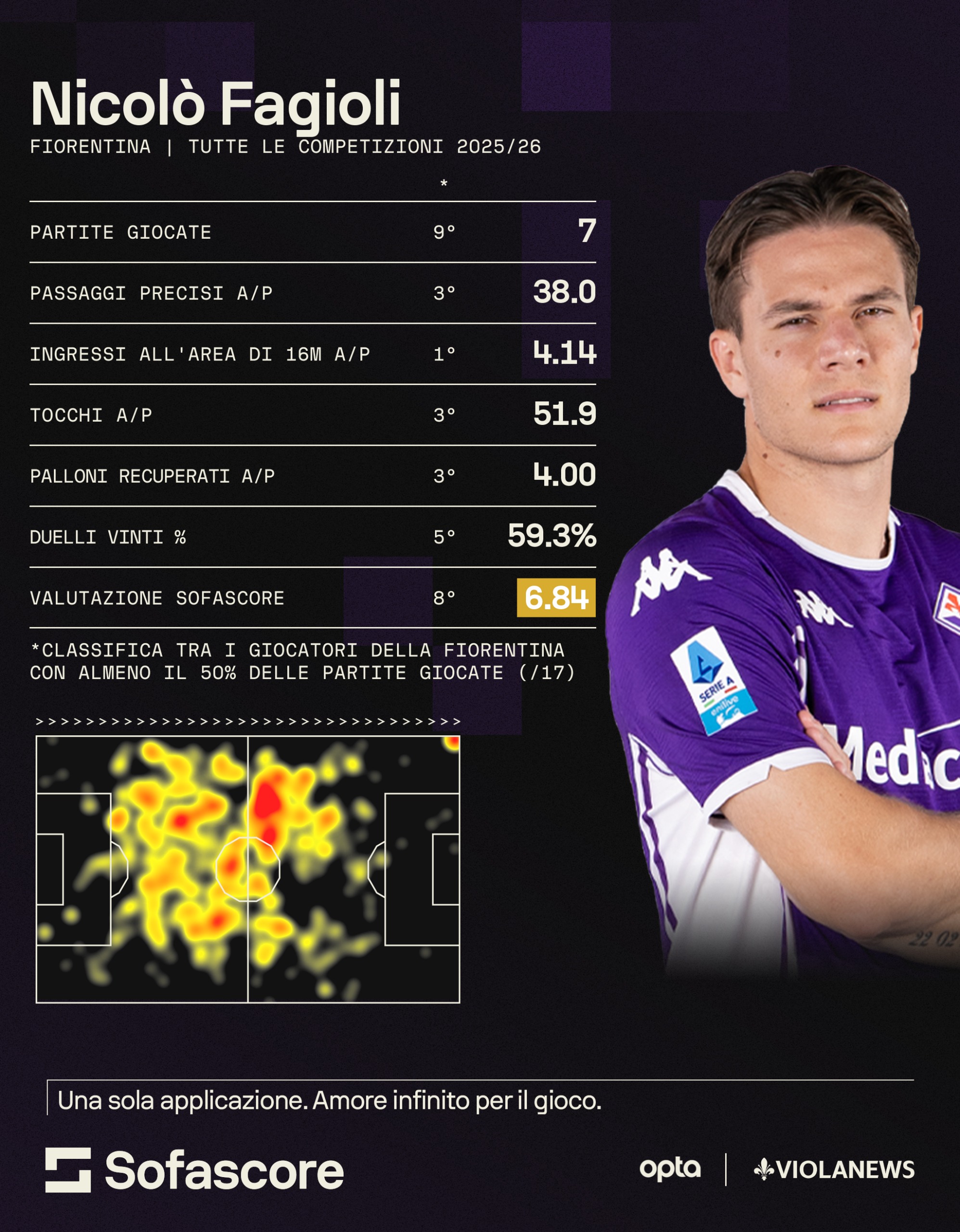 Un dato che fa rumore, alla luce soprattutto dell'importante investimento da quasi 20 milioni fatto dalla Fiorentina per lui e dei lampi di genio mostrati nei cinque mesi passati in viola la scorsa stagione. E anche lo stesso Pioli aveva fatto intendere che Fagioli avrebbe ricoperto un ruolo di primo piano nel corso della stagione, lavorando attentamente per cucirgli addosso il ruolo di regista nel centrocampo a due. Una soluzione quasi immediatamente abbandonata dopo l'arrivo di Nicolussi Caviglia, con un impiego diventato sempre più marginale. tant'è che è in Conference League, dove gli avversari sono di un livello inferiore, che sta trovando maggiore spazio, seppur con poca fortuna.