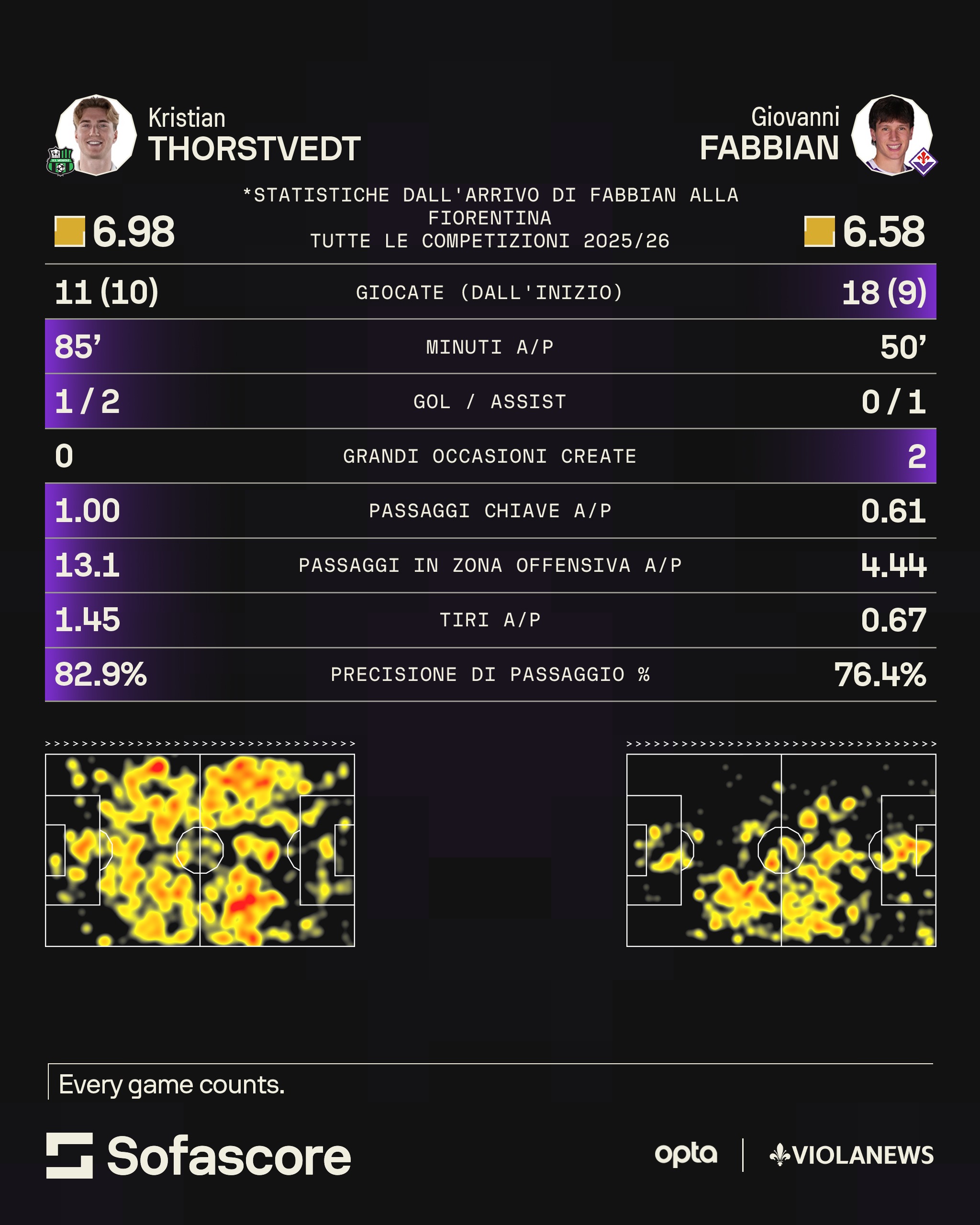 —Proprio nelle ore in cui la Fiorentina chiudeva col Bologna per Giovanni Fabbian, a Firenze faceva capolino da turista proprio la mezzala norvegese del Sassuolo. I neroverdi, però, avevano da subito fatto muro e respinto preventivamente al mittente l'offerta da 15 milioni che i viola avevano intenzione di mettere sul piatto. Una cifra che poi, anche a causa di questo secco rifiuto neroverde, al Viola Park si è scelto di dirottare interamente sull'operazione Fabbian col Bologna. Eppure nel corso del mercato di riparazione era ventilata l'ipotesi - da capire quanto verosimile - di affondare per una doppia operazione. Pochi giorni prima però a Firenze era già arrivato anche Brescianini e alla fine la Fiorentina non presentò offerte ufficiali per Thorstvedt, come disse seccato proprio Carnevali.