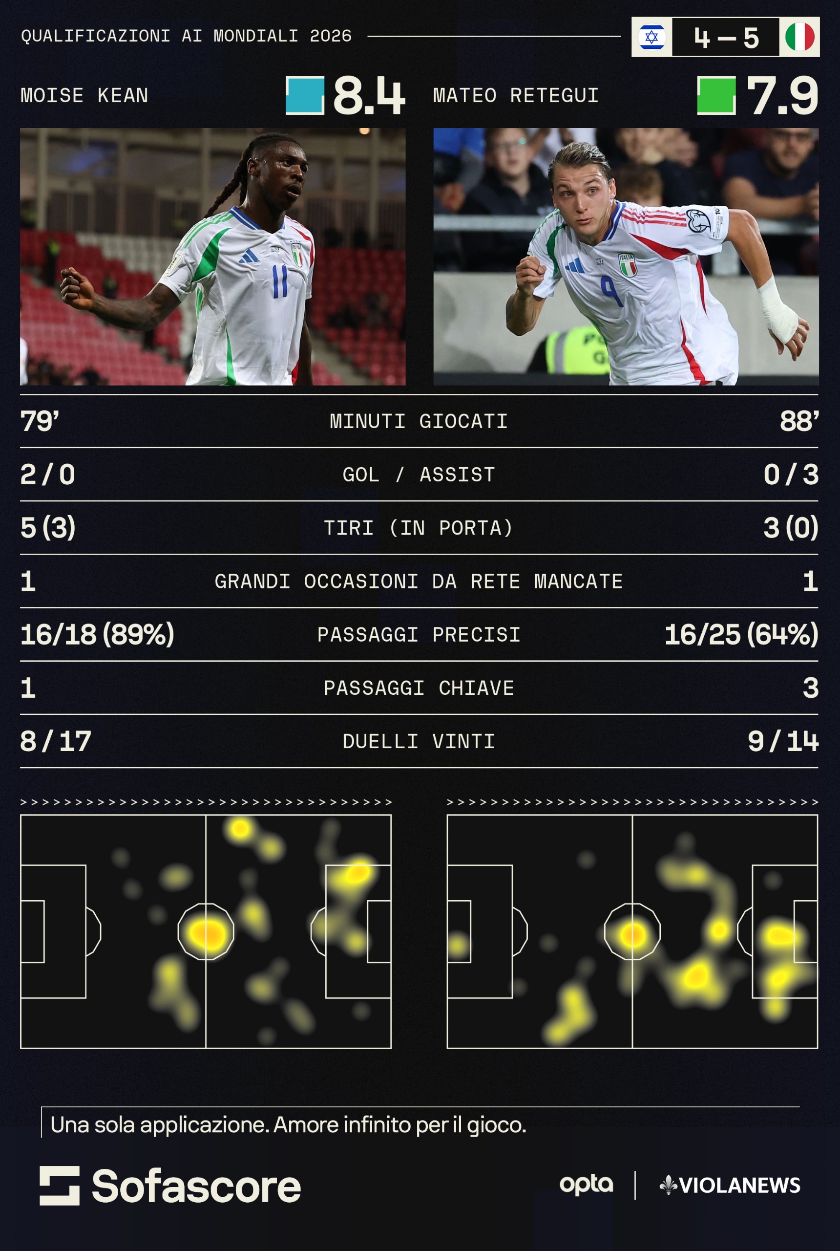 Lo spunto ci arriva dalle heatmap di Torino-Fiorentina e Israele-Italia confezionate dagli amici di Sofascore. Kean, Piccoli e Retegui sono destri naturali, ma se quest'ultimo non ha problemi nell'occupare qualsiasi posizione del fronte offensivo, per gli altri due il discorso è leggermente diverso. I due attaccanti viola hanno una naturale predisposizione (come testimoniato dalla mappa di calore) a partire leggermente decentrati sul lato sinistro del campo. Tendono, insomma, ad occupare la stessa zona di campo e 'pestarsi i piedi'.