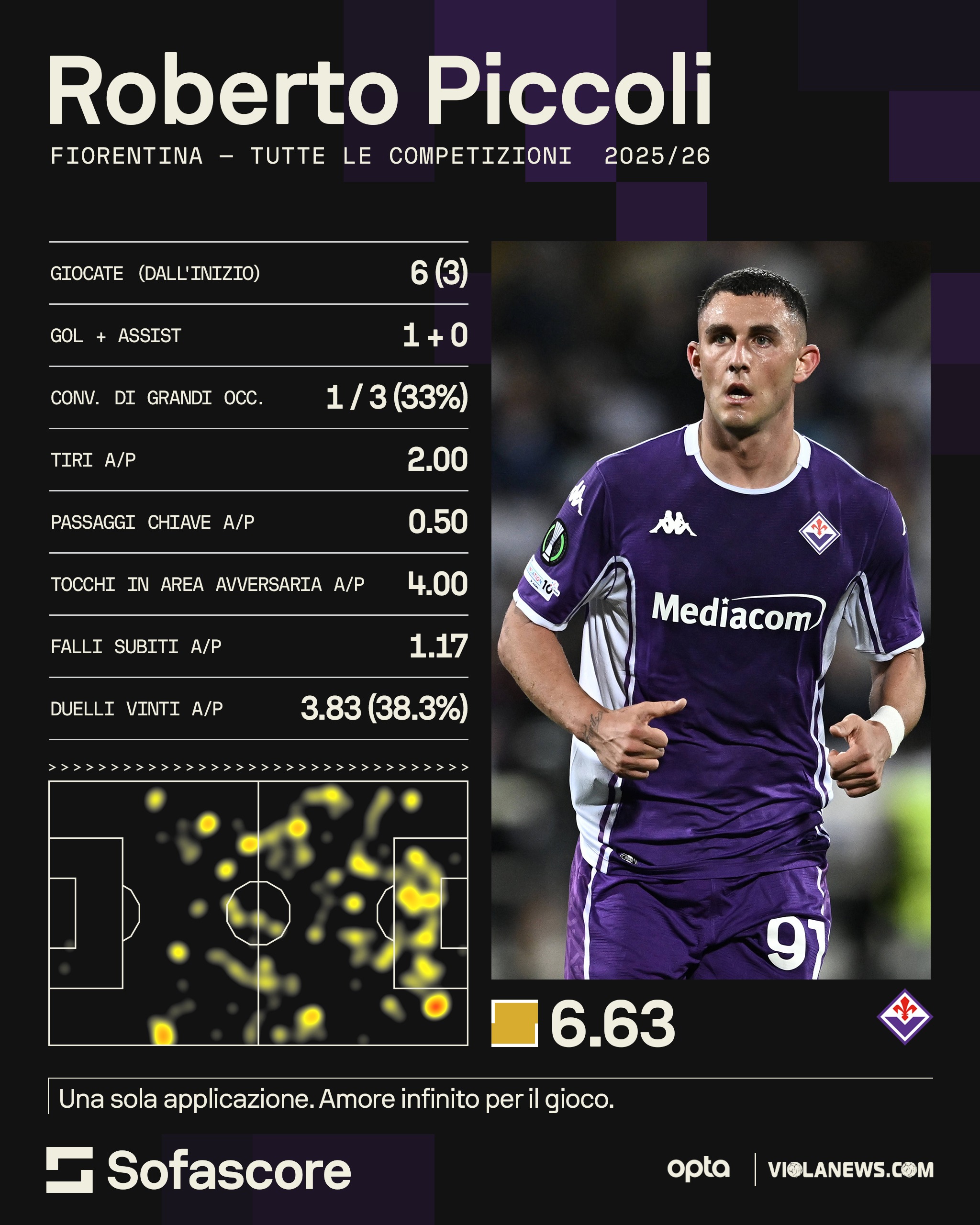Oltre a ciò, ovviamente Piccoli potrebbe prendersi sulle spalle la maglia della Fiorentina in vista della ripresa del campionato, nella gara a San Siro contro il Milan di domenica. Situazione che, a sua detta, potrebbe ampiamente rispecchiare il discorso sulle pressioni fatto dopo la gara di Conference League: "Cerco di far parlare il campo, parlo con i miei compagni sui movimenti da fare. Mi piace avere la pressione, mi gaso ancora di più". Tutto dipenderà dalle condizioni di Moise Kean, che questo pomeriggio ha lasciato il ritiro azzurro per fare rientro al Viola Park.