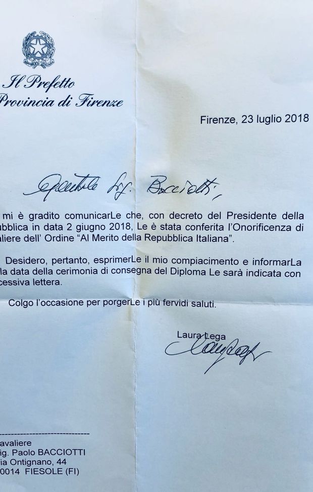 Paolo Bacciotti è Cavaliere: “Che sorpresa, sono onorato”. E sulla Fiorentina…