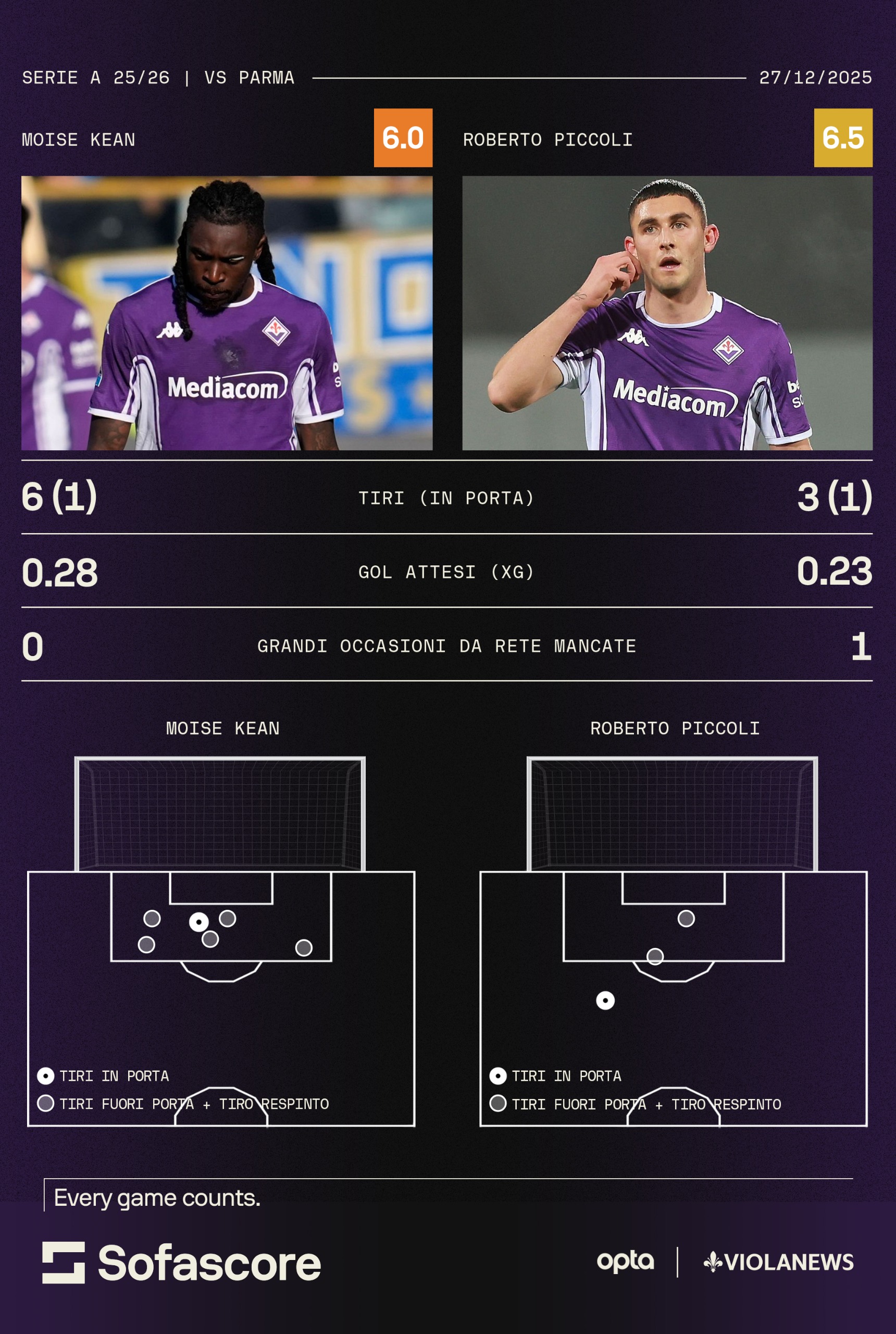 Innanzitutto era uno scontro diretto: vincere contro il modesto (mamma mia, quanto modesto) Parma avrebbe voluto dire salire a -2 dai ducali quartultimi prima di oggi, cominciando l'anno 2026 con tutta un'altra verve. Tutto l'opposto, -8 e pure con una partita in più rispetto a loro. E non è stata una partita terrificante come altre in stagione, c'è stata una certa qual produzione offensiva, sono arrivati tanti tiri. La svolta tattica impressa finalmente da Vanoli ha comunque portato a dei piccoli miglioramenti anche oltre l'immediato. Il problema è che le conclusioni della Fiorentina non sono quasi mai state pericolose, se si eccettua il miracolo di Corvi su Comuzzo in situazione di palla ferma.