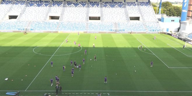 17.05 Entrano in campo i portieri viola per il riscaldamento.