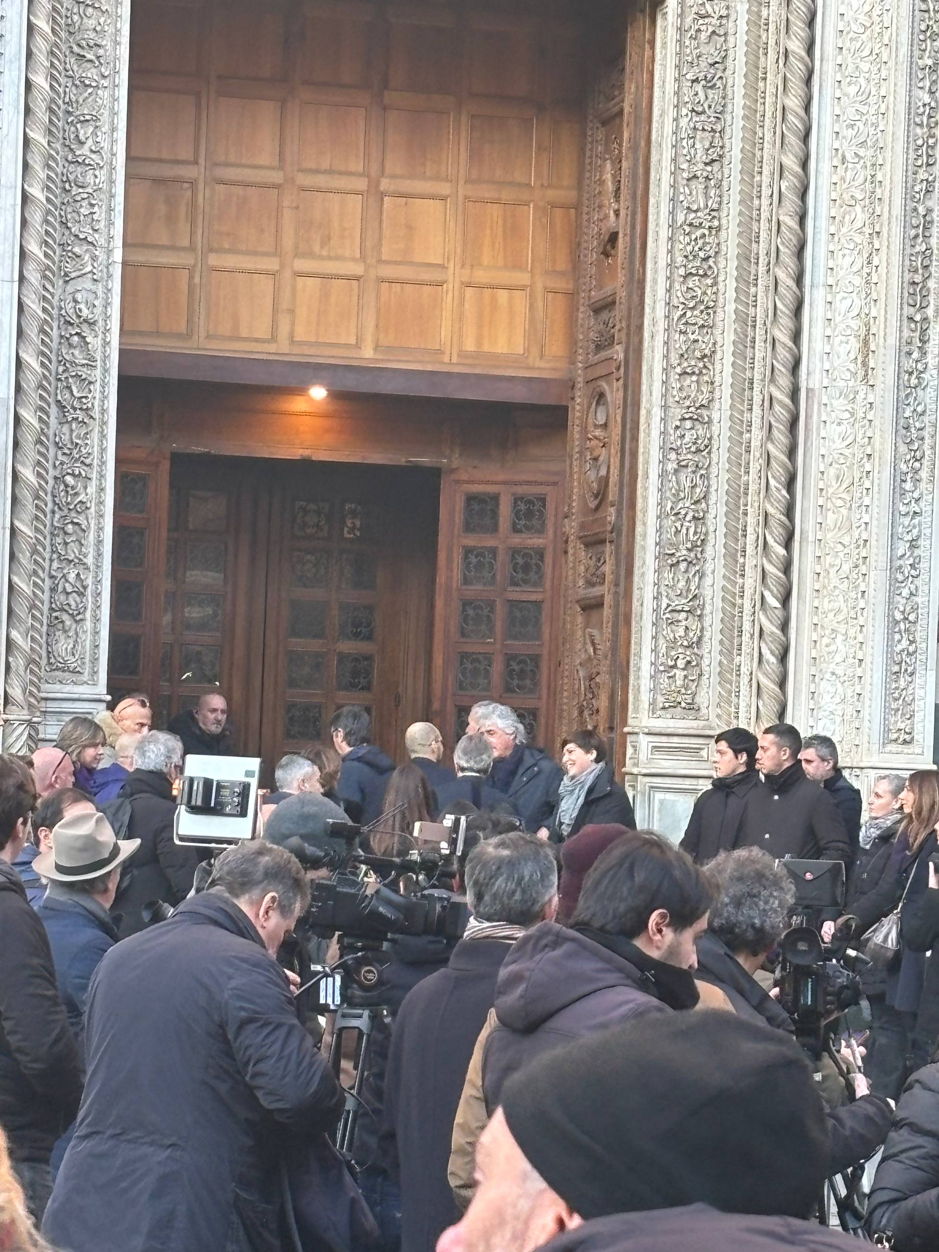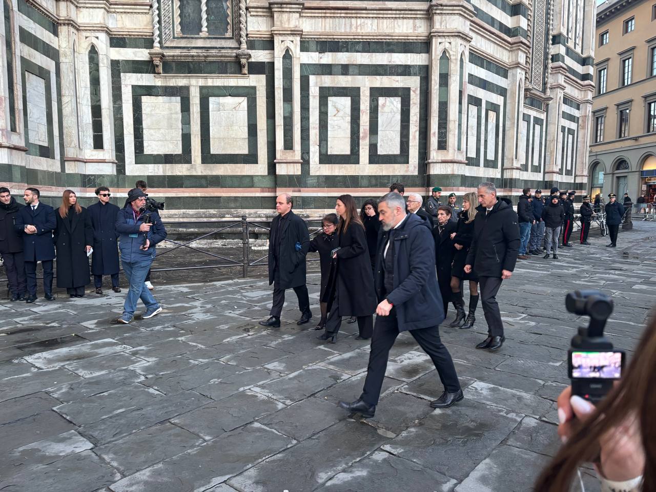 17-47 - Arrivati in Duomo anche l'ex sindaco Dario Nardella e l'attuale sindaca di Firenze Sara Funaro. Con loro anche il figlio di Claudio Lotito Enrico e Luigi De Siervo, CEO della Serie A