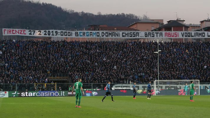 "La Curva Nord, fulcro del tifo atalantino, ha appeso uno striscione recante la seguente scritta: "Firenze - 27/2/2019 - Oggi Bergamo, domani chissà... basta abusi, vogliamo la verità". Il collegamento è agli scontri avvenuti dopo la semifinale d'andata di Coppa Italia, quando i sostenitori nerazzurri sono entrati in contatto con le Forze dell'Ordine sul Viadotto del Varlungo nel capoluogo toscano.