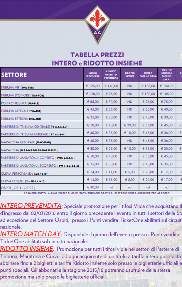 Biglietti Fiorentina-Verona, info e prezzi. C’è anche la promozione “ridotto insieme”