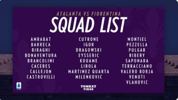 Ecco la lista dei convocati pubblicata dalla Fiorentina pochi minuti fa: