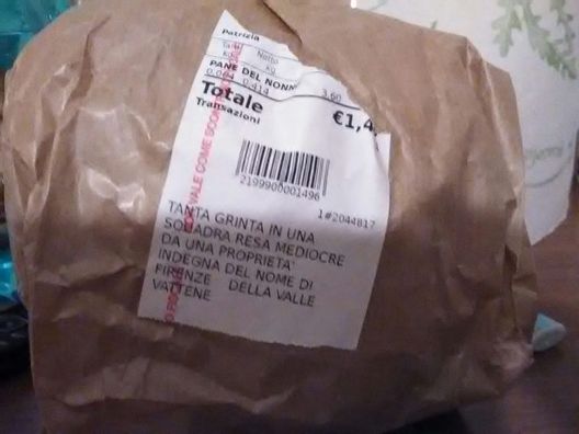 Minoranza o maggioranza che sia, avevamo visto tante forme di contestazione nei confronti dei Della Valle. Cori e striscioni le più frequenti, ma anche il mondo dei social. Lo scontrino, però, è una nuova frontiera. Come si vede nella foto - fonte Lady Radio - il “Della Valle vattene” è finito sull’etichetta del pane, venduto all’interno del punto vendita di una nota catena di supermercati, pur essendo indipendente da questa. La scritta è sull’adesivo con il prezzo che viene applicato sopra la confezione per poi passare alla cassa. "Tanta grinta in una squadra resa mediocre da una proprietà indegna del nome di Firenze" recita ancora lo scontrino.