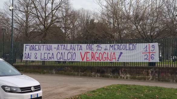 Duro striscione dei tifosi della Fiorentina contro la Rai e la Lega Calcio sull'ora della partita contro Atalanta, valida per gli ottavi di Coppa Italia. A causa del giorno e dell'orario lavorativi, al Franchi saranno presenti circa 11mila spettatori.