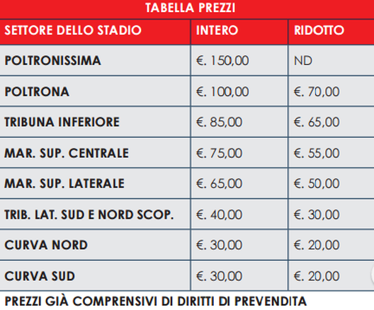 L'Empoli ha pubblicato il prezzo dei biglietti per la gara di domenica prossima contro la Fiorentina: