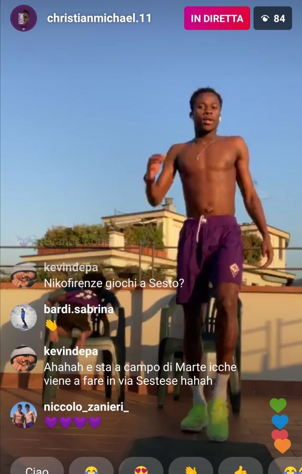 Christian Kouamé non si ferma ed approfitta della quarantena per allenarsi, rigorosamente sul balcone di casa. In attesa di esordire con la sua nuova maglia, l'ivoriano indossa già i colori sociali. Eccolo in un frame della sua diretta Instagram, con indosso il "panta" viola.