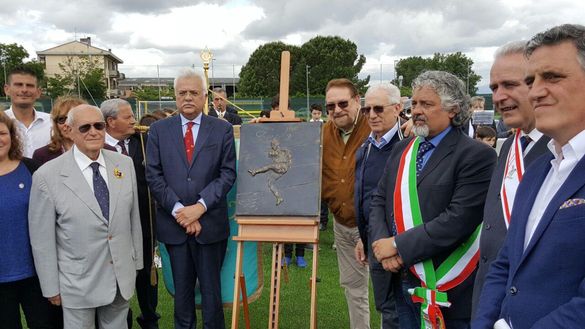 La targa in riconoscimento a Ferenc Puskas. Tra presenti il Sindaco di Signa Alberto Cristianini, il presidente consiglio regionale toscano Eugenio Giani e l'assessore regionale del Pd Paolo Bambagioni.
