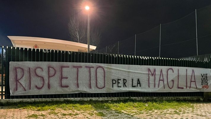 La tifoseria della Fiorentina torna a farsi sentire, all'indomani della sconfitta casalinga con la Roma. Da pochi minuti è stato affisso uno striscione, a firma Viesseux, alle cancellate del centro Sportivo "Davide Astori". Proprio di fronte all'ingresso riservato ai calciatori, ben visibile al loro passaggio. Lo striscione è eloquente e non merita ulteriori commenti: "Rispetto per la maglia".