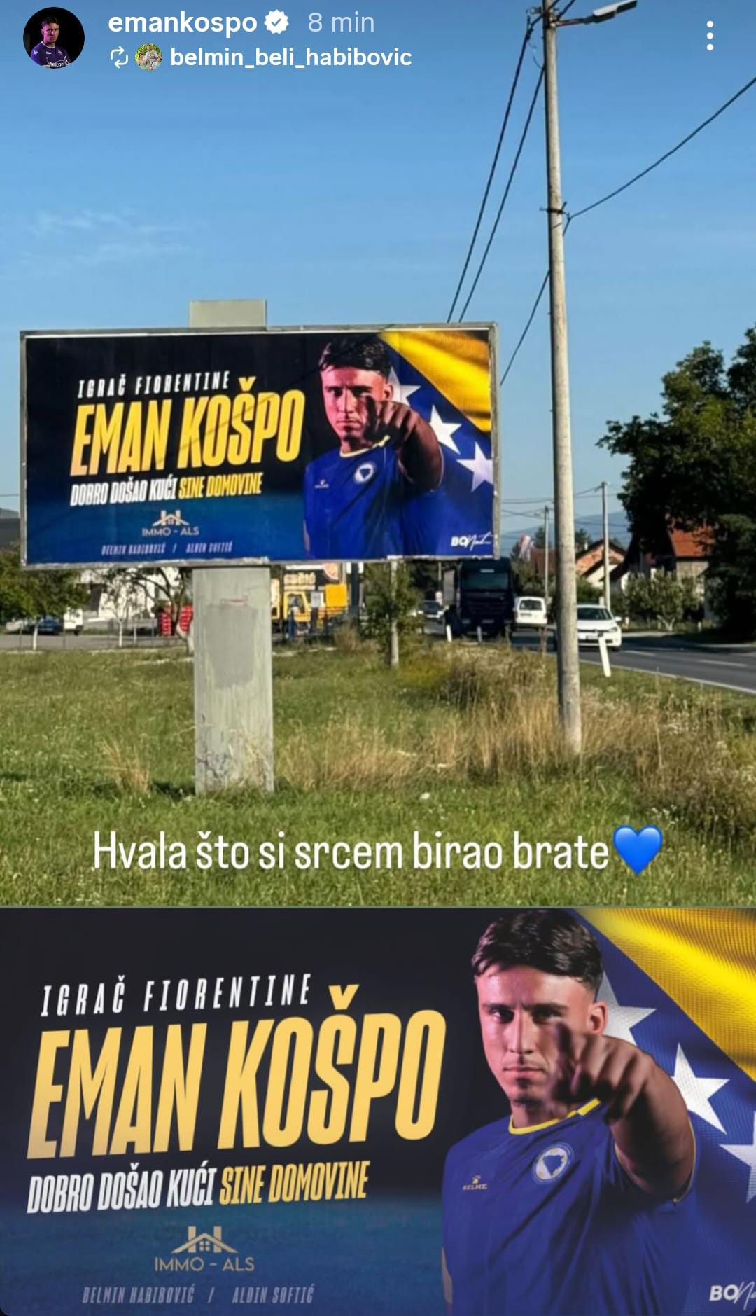 Il difensore infatti è nato e cresciuto nel paese elvetico, ma ha optato per il paese d'origine della famiglia ed è stato convocato per le prossime sfide contro San Marino e Austria. E proprio in Bosnia è apparso su un cartellone pubblicitario in onore della sua scelta che recita "Benvenuto a casa figlio della madrepatria". Il giovane viola è pronto a rispondere presente.