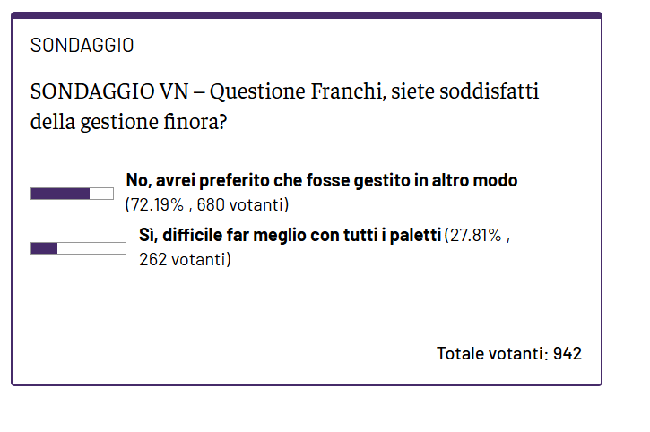 La questione stadio a Firenze sta diventando, o meglio, è diventata a tutti gli effetti un tormentone. Dalla volontà di Commisso di mettersi in proprio di anni fa, poi per forza di cose abbandonata, alla ristrutturazione del Franchi tramite i fondi del Pnr, le problematiche non sembrano mai finire. Dai 55 milioni, destinati al Franchi, che creano tensioni al consiglio regionale, fino alle polemiche dei tifosi che da anni sperano di non prendere più l'acqua per andare allo stadio. Noi di ViolaNews abbiamo chiesto ai nostri lettori qual è la loro opinione a riguardo, se si sentono soddisfatti o meno dell'andamento della gestione fino a oggi. Avete votato in 942 e per il 72% di voi, la gestione del caso Franchi è stata negativa.