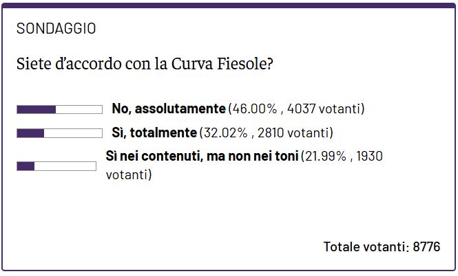 Condividete la presa di posizione della Curva Fiesole contro Commisso e Pradè? Sì, no o solo in parte? Ecco cosa avete votato alla nostra domanda