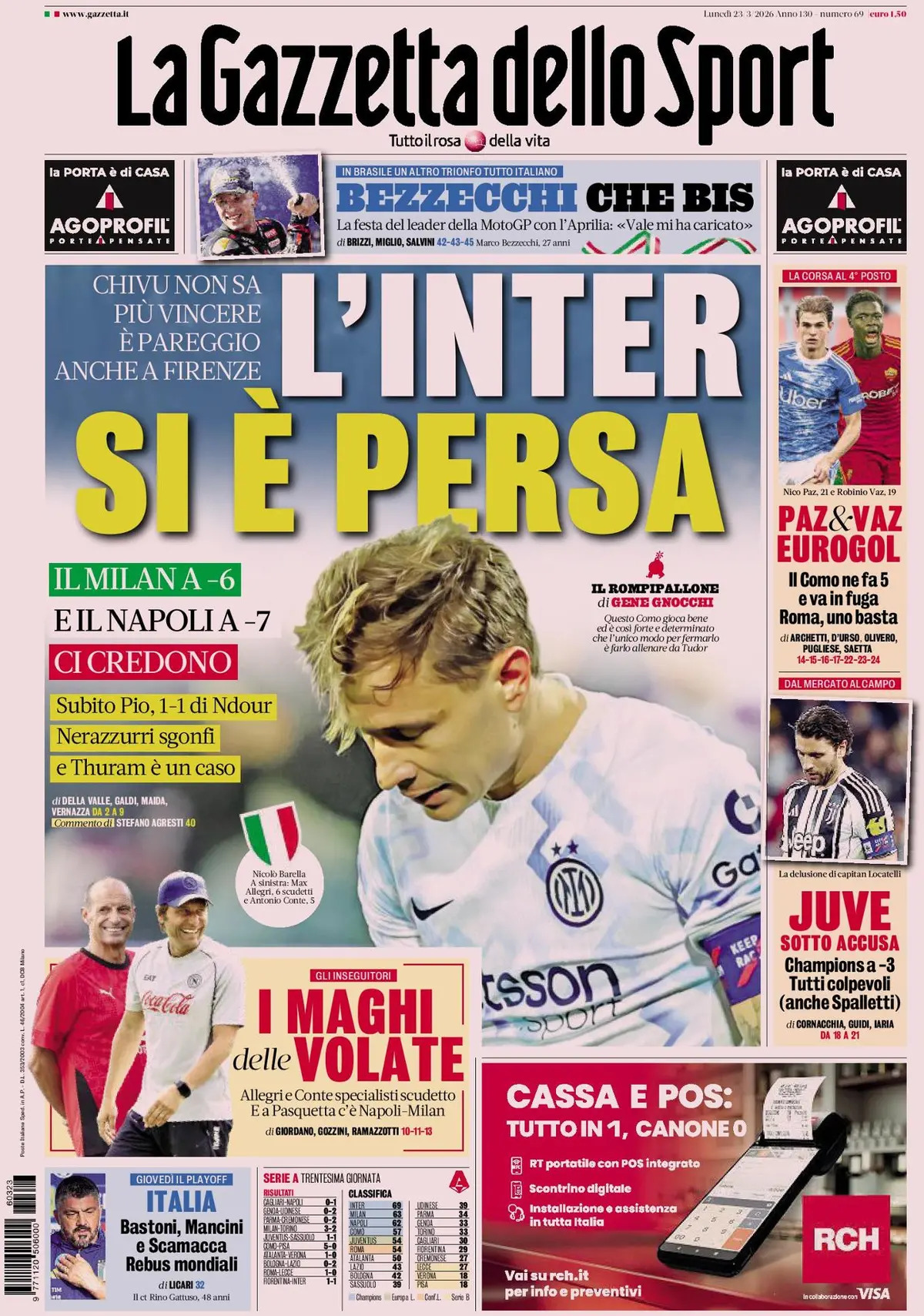 La Gazzetta dello Sport, quotidiano sportivo fondato il 3 aprile 1896 da Eugenio Camillo Costamagna e Eliso Rivera, è uno dei maggiori quotidiani in Italia e il più venduto tra quelli sportivi, ma anche il più longevo in Europa. Attualmente è diretto da Andrea Monti e l’editore è RcsMediaGroup, mentre la sede dell’edizione nazionale è a Milano, appunto conosciuta anche come Edizione Milano. Mentre ci sono anche La Gazzetta dello Sport edizione Roma per Roma e Lazio, La Gazzetta dello Sport edizione Puglia per Puglia e Basilicata, e La Gazzetta dello Sport edizione Sicilia per Sicilia e Calabria. Le prime pagine cambiano in funzione dell'edizione.