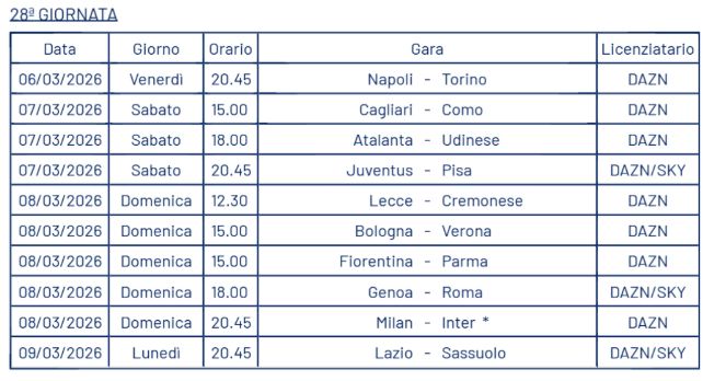 Per la Fiorentina ogni partita sarà vitale per la sopravvivenza, a cominciare dalla trasferta di Udine. Uno degli scontri più delicati sarà quello dell'8 marzo contro il Parma, poi arriverà la volta della Cremonese di Nicola. Gli uomini di Cuesta si sono tirati fuori dalla bassa classifica con le ultime vittorie. La Lega ha appena comunicato gli orari della giornata numero 28 fino alla numero 30.