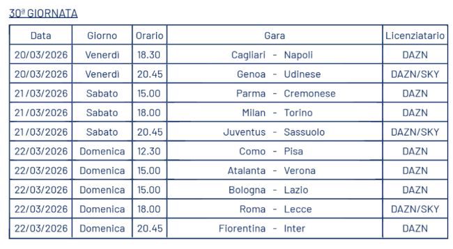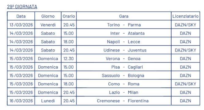 La Fiorentina ospiterà i ducali nel pomeriggio : il calcio d'inizio è previsto per le 15:00. C'è da riscattare la sconfitta dell'andata, ultima del 2025, quando i crociati hanno vinto per 1-0. Poi sarà la volta di Cremonese-Fiorentina: allo Zini si torna a giocare di lunedì, il 16 marzo alle 20:45, come contro l'Udinese alla prossima. Infine, domenica 22 marzo, sempre alle 20:45, ci sarà Fiorentina-Inter a chiudere la 30esima di campionato.