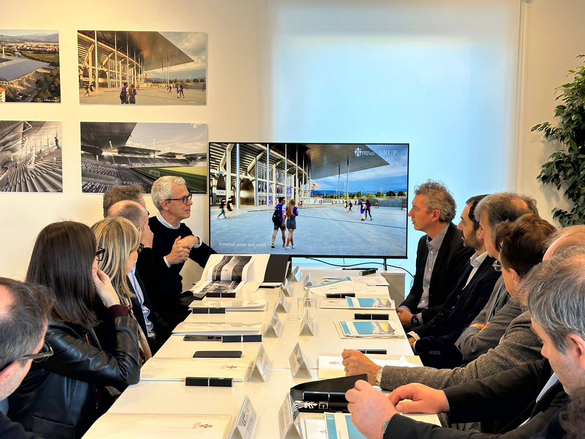All’incontro hanno preso parte le istituzioni locali, con la sindaca Sara Funaro, l’assessora allo sport Letizia Perini e la direttrice generale di Palazzo Vecchio Lucia Bartoli, insieme al direttore dei Servizi tecnici del Comune Alessandro Dreoni. Presenti anche rappresentanti di ACF Fiorentina e i progettisti di Arup, incaricati della ristrutturazione dello stadio.