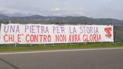 FOTO – Striscione all’esterno del Viola Park: “Una pietra per la storia”