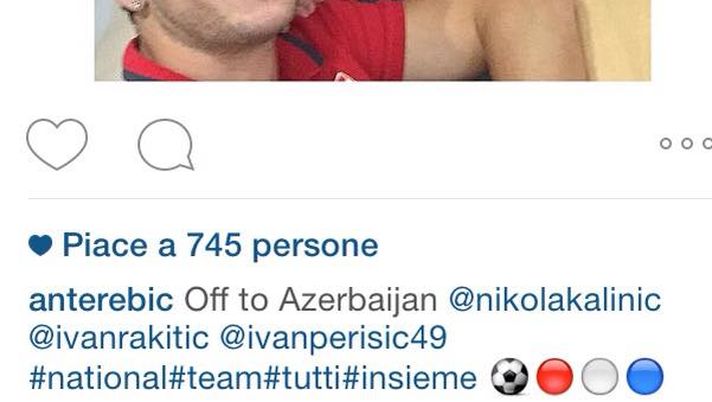 Ante Rebic ha pubblicato questa foto sul proprio profilo Instagram dove si ritrae col compagno di squadra Nikola Kalinic e con due campioni come Perisic e Rakitic.