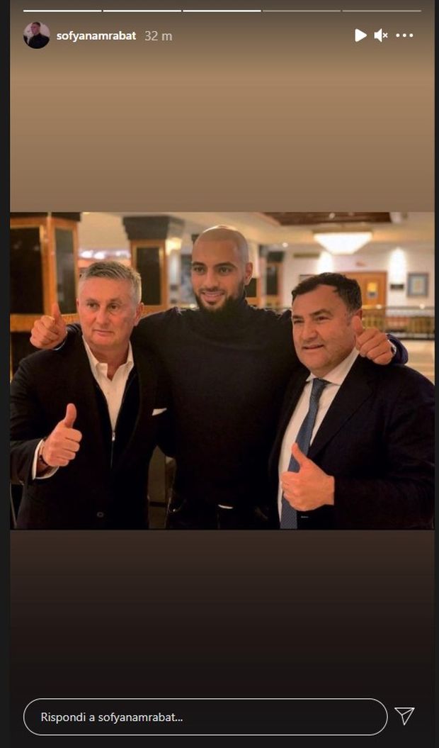 Il marocchino, in ritiro con la sua Nazionale, appena chiusa la sessione di mercato ha pubblicato tre foto nelle storie con Commisso, Barone, Pradè ed alcuni compagni di squadra